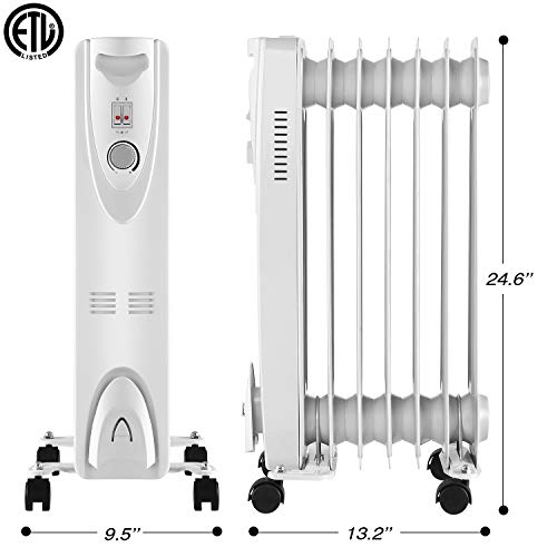 • R.W.FLAME Space Heater Oil Filled Radiator Heater, 3 Heat Settings, Thermostat Adjustment Quiet Portable Heater with Tip-over & Overheating Functions White