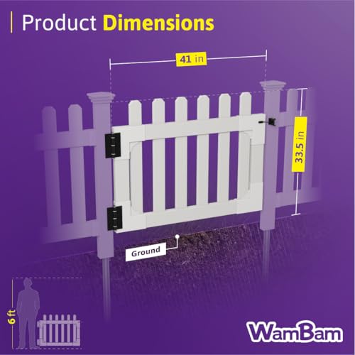 WamBam Fence 33.5in H x 42in W (1 Gate) No Dig WamBam Newport Gate Kit, White Vinyl Picket Fence Gate Kit for Newport Fence Panels, Gate for Backyard, Patio , Outdoor, or Garden Fence, ZP19004, 36x48 Inch