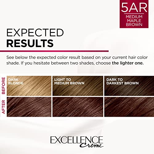 • L'Oreal Paris Excellence Creme Permanent Triple Care Hair Color, 5AR Medium Maple Brown, Gray Coverage For Up to 8 Weeks, All Hair Types, Pack of 1