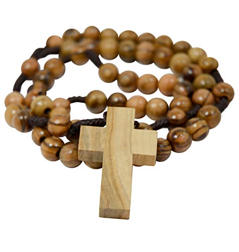 • Bethlehem Certified Rosary Beads from Olive Wood - Our Father Christian Catholic Wooden Prayer Beads in Cotton Rosary Pouch and Authenticity Certificate - For Men and Women