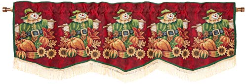 HomeCrate Fall Harvest Collection, Scarecrow Pumpkins Autumn Leaves and Sunflowers Design, Tapestry 60" x 15" Window Valance