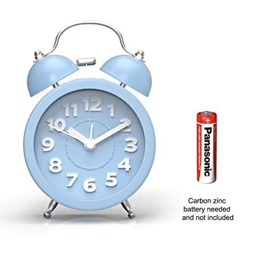 • PiLife 3" Mini Non-ticking Vintage Classic Analog Alarm Clock with Backlight , Battery Operated Travel Clock, Loud Twin Bell Alarm Clock for Kids ( 3D Blue)