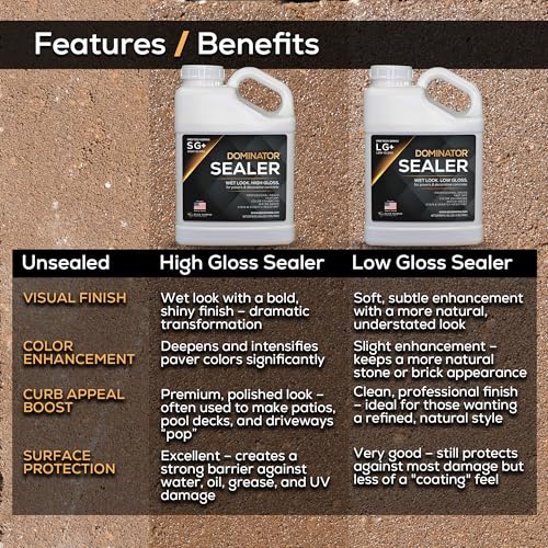 • 1 Gal. DOMINATOR LG+ Clear Acrylic Sealer | Low Gloss Paver Sealer | Wet Look, Color Enhancing | Professional Grade | Concrete Pavers and Decorative Concrete | Fast Dry | Driveway, Patio and Walkways