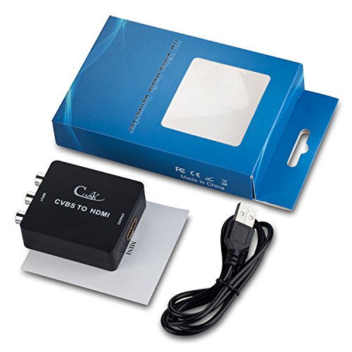 • RCA to HDMI, Cingk 1080P Mini RCA Composite CVBS AV to HDMI Video Audio Converter Adapter Supporting PAL/NTSC with USB Charge Cable for TV/PC/PS3/Blue-Ray DVD,Black