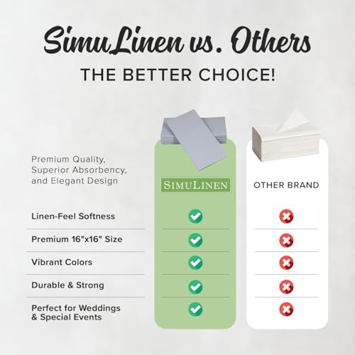 • SimuLinen Grey Linen Feel Disposable Dinner Napkins - Cloth-Like Kosher Napkins for Weddings and Showers, 16"x16", Box of 50