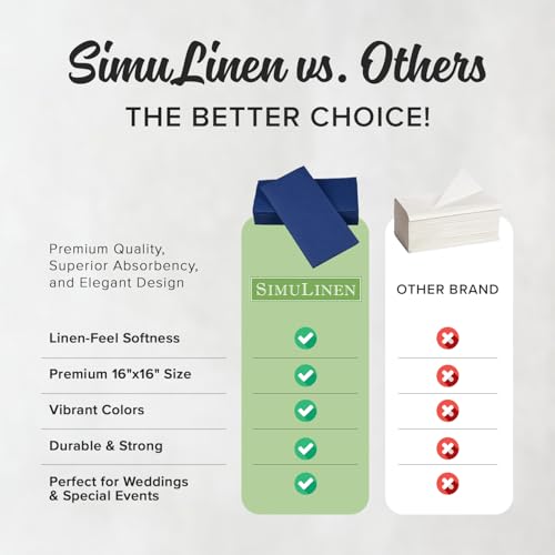 • SimuLinen Dark Blue Linen Feel Disposable Dinner Napkins - Cloth-Like Kosher Napkins for Weddings and Showers, 16"x16", Box of 50