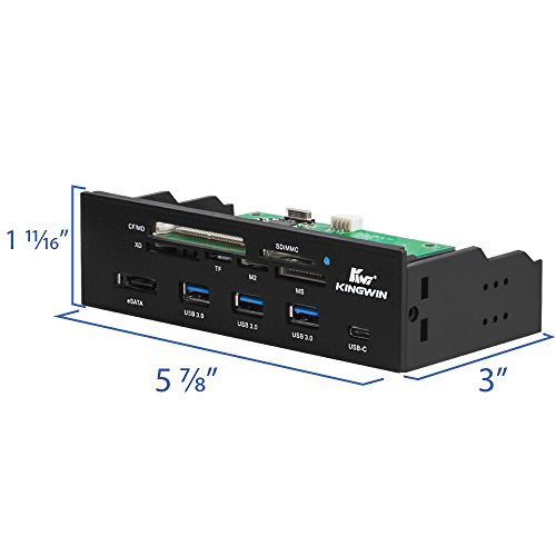 • Kingwin Powered USB Hub 3.0 w/ 1 USB-C Port, SD Card Reader & Micro SD Card Reader - Sata Power Port w/Lightning Speed Data Transfer Up to 5Gbps - 5.25" Computer Case Front Bay, black (KW525-3U3CR)