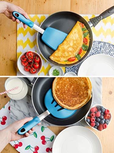 • StarPack Premium Flexible Silicone Turner Spatula Set of 3 - High Heat Resistant to 600°F, Hygienic One Piece Design, Non Stick Rubber Kitchen Utensils for Fish, Eggs, Pancakes & Cookies (Teal Blue)