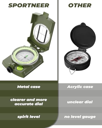 • Sportneer Compass: Accurate Durable Lightweight Orienteering Compass with Strap and Carrying Case, Glow in The Dark Waterproof Hiking Essentials for Camping Backpacking, Best Survival Gifts for Kids