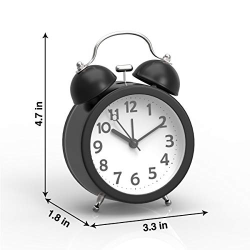 • PiLife 3" Mini Non-ticking Vintage Classic Analog Alarm Clock with Backlight , Battery Operated Travel Clock, Loud Twin Bell Alarm Clock for Kids(Black)