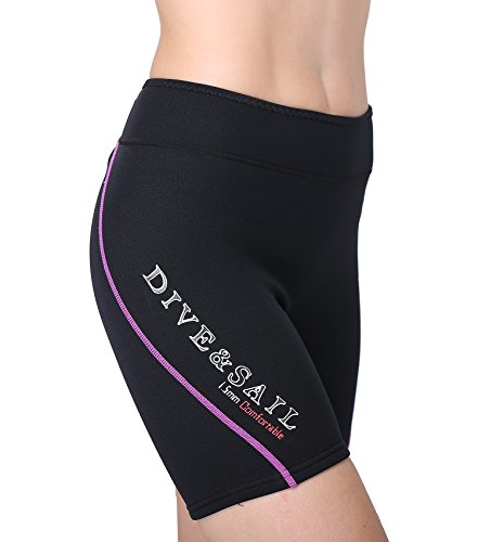 • Dive & Sail Wetsuit Pants 1.5mm Women Neoprene Pants For Kayaking Surfing Snorkeling Padding (Purple & Black, 6)