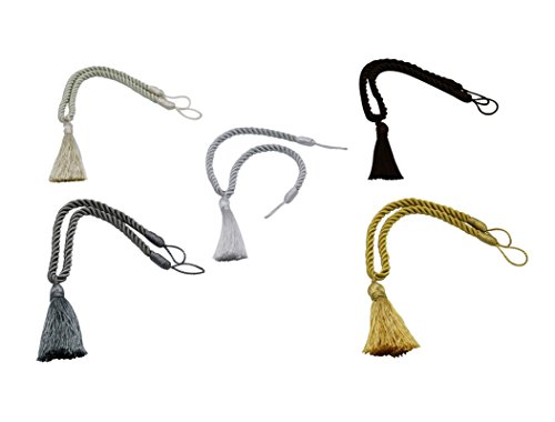 • Home Queen Decorative Tassel Rope Tie Backs for Window Curtain, Hand Knitting Buckle Cord Drapery Holdbacks, Set of 2, Silver White