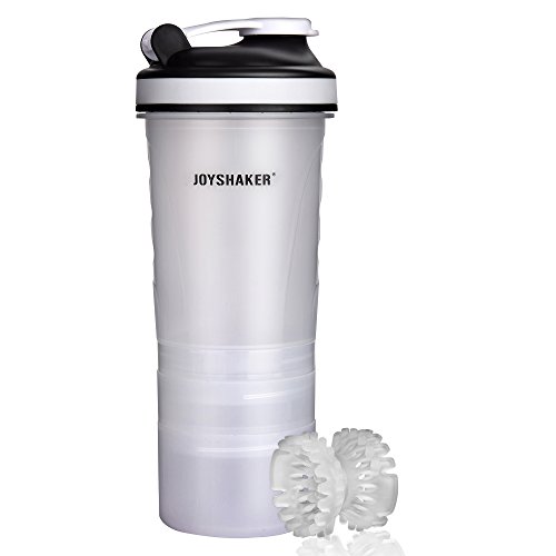 • Joyshaker BPA Free Sports Gym Water Bottle with Storage Food Grade Safe Plastic Protein Shaker Bottle Leak Proof Reusable Insulated Sports Drinking Bottle with Blender for Adults Fitness 750 ml 26 oz