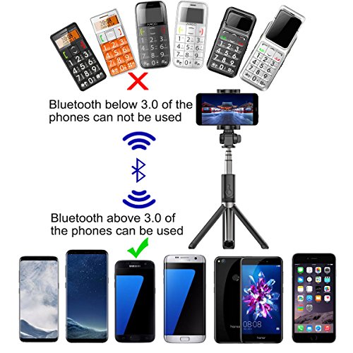 • Selfie Stick Bluetooth Extendable Foldable Selfie Stick Tripod Monopod Built-in Wireless Remote Shutter for Iphone X 8 7 6 Plus Galaxy Note S8 Google LG Samsung Blackberry Huawei and More
