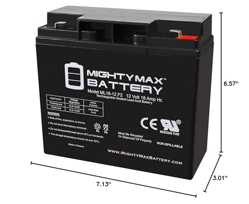 • Mighty Max Battery ML18-12F2-12 Volt 18 AH, F2 Terminal, Rechargeable SLA AGM Battery