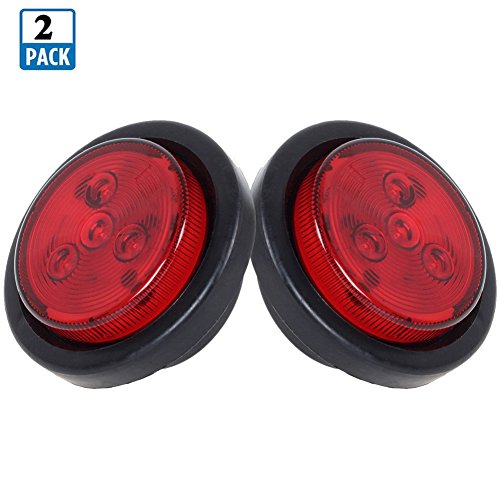 NEW SUN 2 pcs 2.5 Inch Round LED Marker Lights Truck Trailer Clearance Lights Indicator Red 4 LEDs Flush Mount Marker Lights, 2*Red