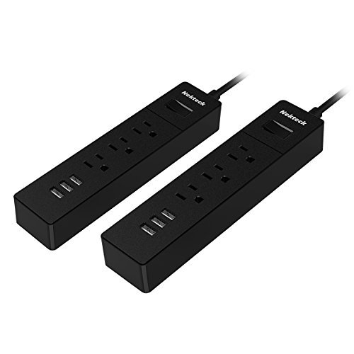 • Nekteck Travel Power Strip/Surge Protector Flat Wall Plug with 3 AC Outlets, 15W 3-Port USB Charger for iPhone, iPad, Samsung Galaxys, Nexus, Tablets, LG and More [4.8ft Cord, 3AC, 3 USB] - 2 Pack