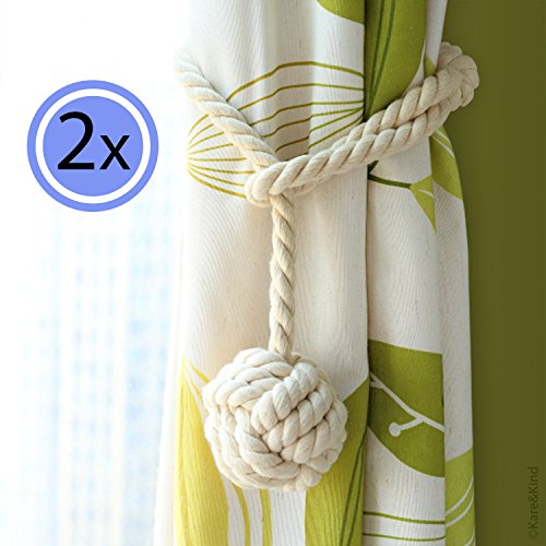 Kare & Kind Curtain Rope Tiebacks - Easy Knot Loop Connection - Holds Your Window Drapes Open - Hand Knitted - Natural Cotton - Neutral Light Beige Color - One Pair (Set of 2) - Elegant Home Décor Solution