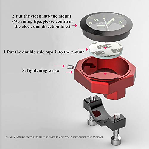 • PerfecTech Waterproof 7/8"- 1 1/8" Handlebar Luminous Dial Motorcycle Clock for Dirt Bike Motocross Yamaha Kawasaki Honda Suzuki Harley Davidson (Red)