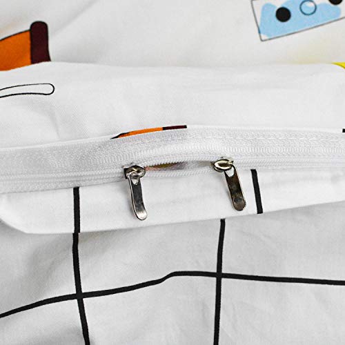 Brandream Kids Bedding Set Boy Cotton 100 Cars Trucks 3-Piece Duvet Cover Set Queen Size(No Comforter Included)