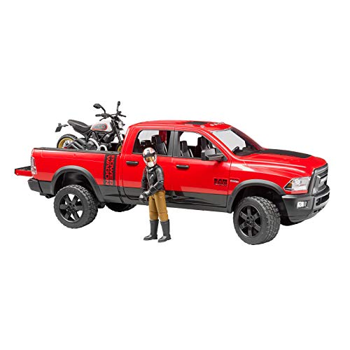 Bruder Ram 2502 Power Wagon with Ducati Scrambler Desert Sled and Driver Vehicles Toy (Color May Vary), Red