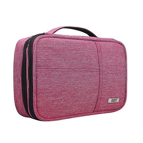 • BUBM Travel Organizer, Electronic Accessories Storage Bag for Cord, Memory Card, Power Bank and More, A Pouch fits for iPad Pro (Extra Large, Denim Pink)