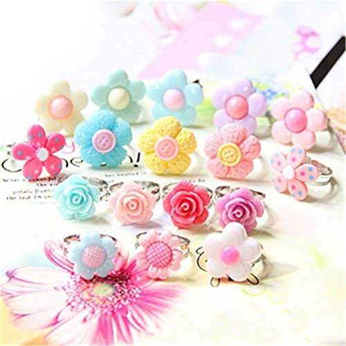 • 16Pcs Kids Adjustable Flower Ring Multi Color Polymer Cute Finger Rings For Girls Handmade Jewelry,Girl Pretend Play and Dress Up Rings,Birthday Gift Party Favors by Jiabetterniu