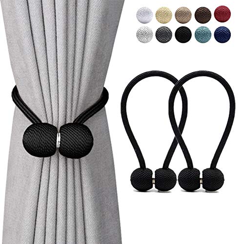 • DEZENE Magnetic Curtain Tiebacks,The Most Convenient Drape Tie Backs,2 Pack Decorative Rope Holdback Holder for Big,Wide or Thick Window Drapries,16 Inch Long,Black