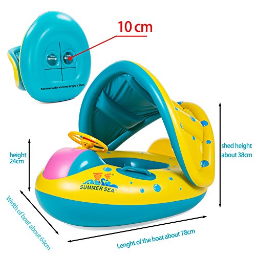 • EncoyKid Baby Swimming Ring, Inflatable Baby Float Sunshade Swimming Boat Pool Seat with Sun Canopy for Kids Age 1-3 Years