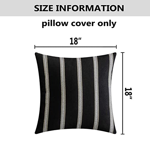 • Home Brilliant Decorative Throw Pillow Covers Modern Farmhouse Stripe Cushion Covers for Bed Sofa Couch Decoration, 18 x 18 inches(45x45cm), Black