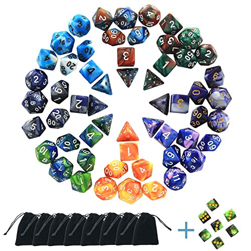 • Polyhedral Dice Set 9x7-Die Series Two Colors for Dungeons and Dragons DND RPG MTG Table Games Dice with Complete Set of d4, d6, d8, d10, d12, d20 + FREE Pouches