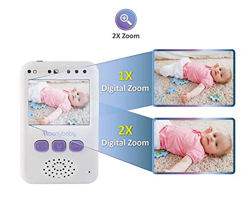 Baby Monitor with Camera and Audio by Moonybaby, Long Battery Life, Long Range, Non-WiFi, Color Screen, Auto Night Vision, 2 Way Talk Back, Zoom in, Power Saving, VOX, Voice Activation and Lullabies, Purple/White
