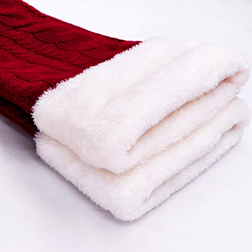 • LimBridge Christmas Stockings, 2 Pack 18 inches Large Cable Knit Knitted Faux Fur Cuff, Xmas Rustic Personalized Stocking Decorations for Family Holiday Season Decor, White or Burgundy