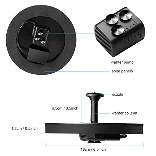 • MINGER Floating Solar Fountain, Solar Birdbath Fountain with 1.4W Solar Panel Solar Power Fountain Pump with 4 Nozzles, Solar Powered Fountain for Birdbath, Pond, Pool, Aquarium, Garden and Patio
