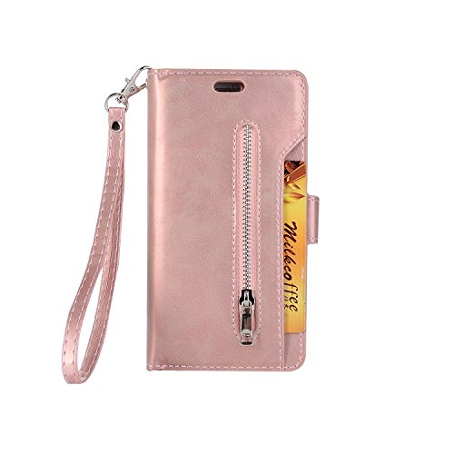 • iPhone X Case Cover,Premium Artificial Leather Flip Folio Screen Protector with Bracket Stand Card Slots for 5.8 inch Apple iPhone X(RoseGod) Boens