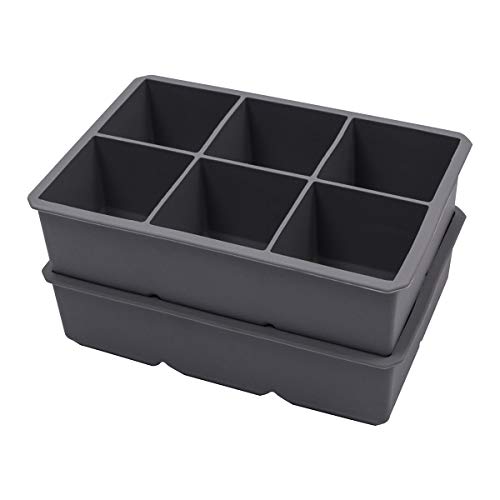 • Webake Silicone Ice Cube Tray Molds 2 Pack, Large Square Cubes 2 inch (6 Cavity) BPA Free,Easy Release,Flexible (Grey)