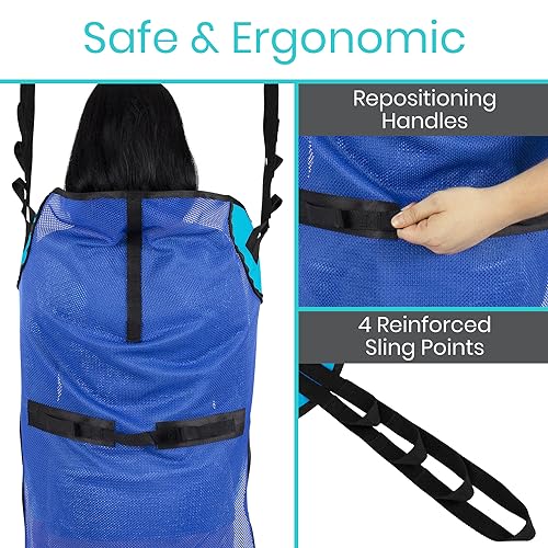 • Vive Patient Lift Sling - Full Body Mesh Sling for Showering & Home Use - Transfer Sling for Elderly & Disabled - Patient Transfer Blanket & Lift Pad Assist Device for Bed Positioning & Lifting