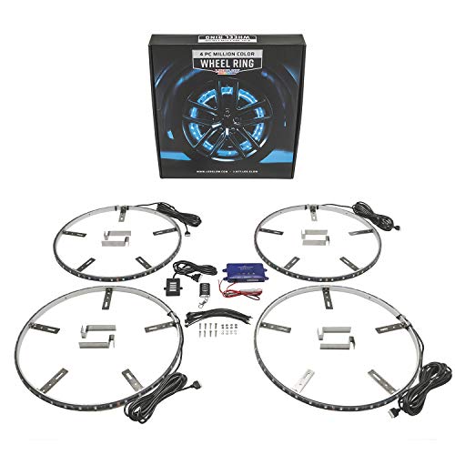 • LEDGlow 4pc 15.5" Million Color LED Wheel Ring Accent Lighting Kit- Fits Wheels with 15" Brakes - Heavy-Duty & Versatile Design - Waterproof Light Strip - Includes Control Box & Wireless Remote