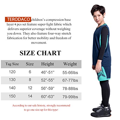 • TERODACO Kids Basketball Jersey and Shorts Set W Long Sleeve Compression Thermal Shirts and Leggings 4PCS Suit for Boys & Girls Navy & Teal