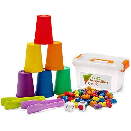 • Create Imagination Games Counting Bears for Toddlers Stacking and Sorting Game with Matching Bears, Cups, Dice and Tweezers,Preschool Learning Toys for Boys and Girls