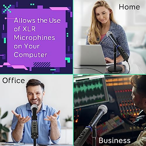 • Pyle Microphone XLR-to-USB Signal Adapter - Universal Plug and Play XLR Mic to PC Adaptor for Digital Recording w/ Mix Audio Control, +48V Phantom Power, Headphone Volume, USB Cable - PDUSBPP10