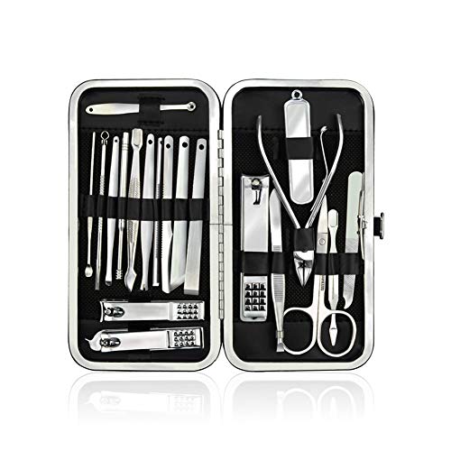 • Manicure Pedicure Set Stainless Steel Nail Clippers Set, Nail Tools Set of 20 Black Leather Case Portable Travel & Grooming Kit Men Women