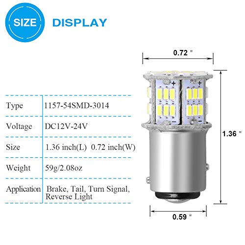 • YITAMOTOR 4x 1157 LED Bulbs, 54SMD 650 Lumens, BAY15D 7528 2357 2057 LED Replacement Light Bulb for Brake Tail Running Parking Backup Light for Car Vehicle RV Trailer Boat, 12v-24v