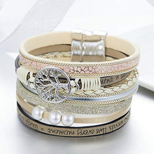 • Worldly Finds 2 White Sage Smudge Stick Gift Set Smudging Kit - Leather Wide Cuff Multilayer Wrap Handmade Bracelet, Strong Magnetic Clasp, Instructions and Supplies Bag! (Tree of Life Cream Set)