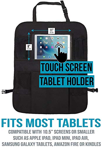 • Car Backseat Organizer With Touch Screen Tablet Holder Storage Pockets Kick Mats Car Seat Back Protectors Great Travel Accessories for Kids and Toddlers … (21 in x 16 in)