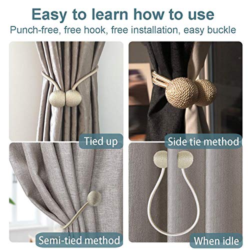 • 6 Pack European Style Magnetic Woven Texture Rope Curtain Tiebacks, The Most Convenient Drape Tie Backs,Decorative Weave Rope Holdback Holder for Window Sheer Blackout Drapries Office, 16 Inch (Beige)