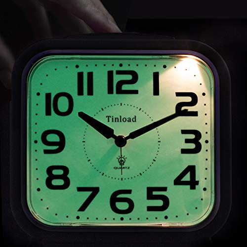 Tinload 5.5" Night Light Analog Alarm Clock Silent Non Ticking, Gentle Wake, Beep Sounds, Increasing Volume, Battery Operated Snooze and Manual Light, Easy Set (Best for Elder), Black-lt