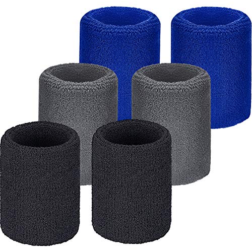 • WILLBOND 6 Pack Wrist Sweatbands Sports Wristbands for Football Basketball, Running Athletic Sports (Black, Blue, Gray)