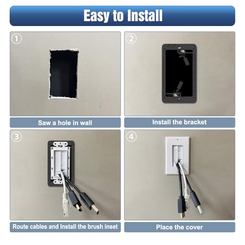 • VCE Brush Wall Plate Cable Pass Through with Bracket, Decorator Cover for Low Voltage Cables - White, 2-Pack