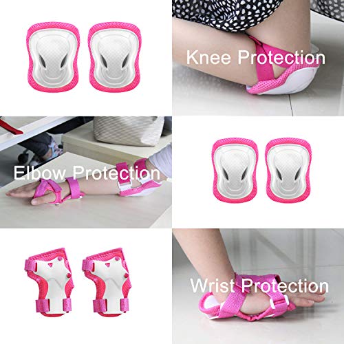 • YUFU Kids Helmet Sports Protective Gear Set for 9-13 Years Children Boys Girls Bike Skateboard Adjustable Helmet Knee Elbow Wrist Pads for Cycling Skating Roller Scooter Bicycle, Pack of 7 Pink M